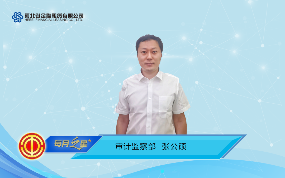 5月份,河北金租踐行金融機構(gòu)穩(wěn)經(jīng)濟的社會責(zé)任,全力以赴增業(yè)務(wù)擴投放,在經(jīng)營管理中涌現(xiàn)了眾多堅定履責(zé)、沖鋒一線的優(yōu)秀部門和員工。經(jīng)工會委員會評選,本月“每月之星”選出勇于擔(dān)當?shù)膬?yōu)勝團隊和勤勉敬業(yè)優(yōu)秀員工,請公司上下再接再厲,再創(chuàng)佳績。