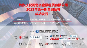 日前,河北省金融租賃有限公司(以下簡稱“河北金租”或“公司”)成功發行2021年第一期金融債券,本期債券由中信證券和交通銀行為牽頭主承銷商,獲得了各家金融機構的積極認購,發行規模10億元,期限3年。此次債券的圓滿發行進一步在市場樹…