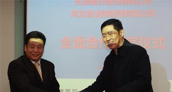 2011年11月15日,公司與天津銀行在河北省石家莊市河北建投大廈舉行了全面合作簽約儀式,周為民總裁與天津銀行副行長岳德生代表雙方簽署了《全面合作協(xié)議書》,天津銀行為公司先期提供同業(yè)授信額度4億元,定向用于開展協(xié)議約定項(xiàng)下業(yè)務(wù)。