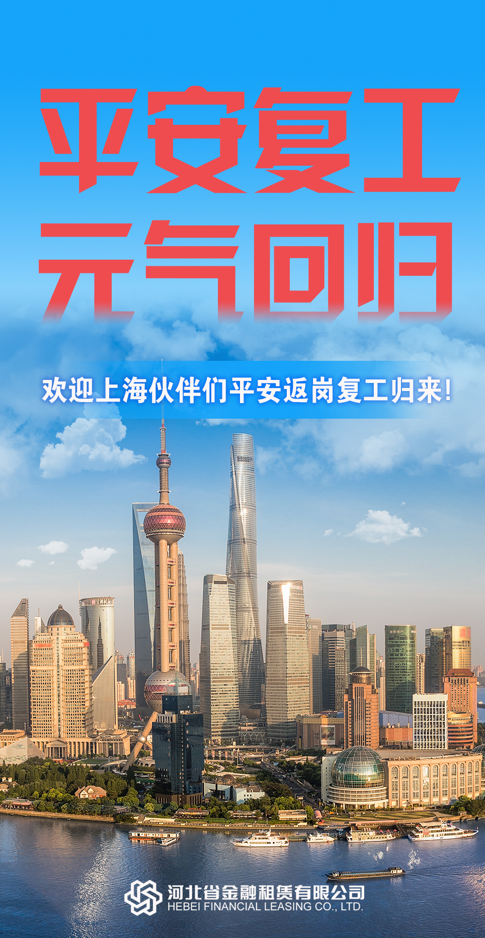 初夏降臨,上海于6月1日迎來有序復工復產復市。 兩個多月來,上海區域的河北金租人嚴格做好疫情防控,居家完成工作任務,穩定提供金融服務。 今天,歡迎大家平安歸來,重新投入業務一線! …